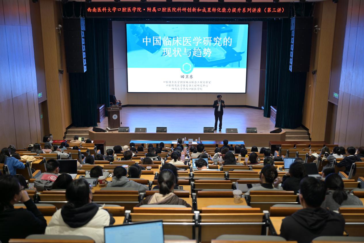11月7日,西南医科大学口腔医学院·附属口腔医院科研创新和成果转化能力提升系列讲座(第三讲)在云峰路院区学术报告厅精彩开讲。本次讲座特邀四川大学华西口腔医院首席专家、口腔颌面创伤与整形外科主任医师、国家“973”项目及国家重点研发计划项目首席科学家田卫东教授担任主讲。全院科研人员与学生积极参与。