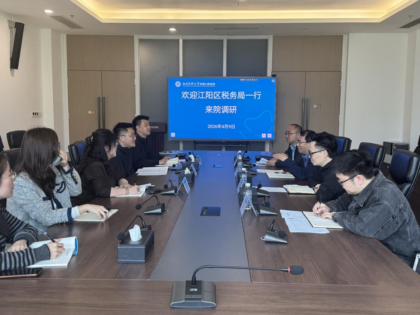 4月9日上午,国家税务总局泸州市江阳区税务局党委书记、局长黄祖权一行四人莅临我院,就医院经营运行状况、税费政策落实、职工社保缴纳等工作开展专题调研。医院党委委员、副院长姚小东及相关科室负责人参加调研座谈,会议由财务科副科长黄加平主持。